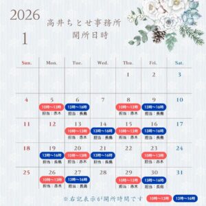 カレンダーに表示された時間が開所の日時です。担当は各時間の下に記載しております。 外回り等で不在の事があるため、用があられる際は確認の連絡をしていただきますと幸いです。 連絡先:メール info@takai-chitos […]