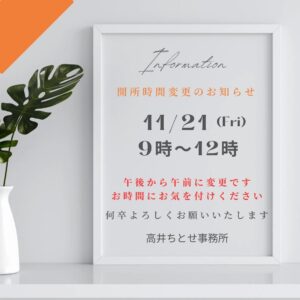 【事務所開所時間 変更のお知らせ📢】新着!!