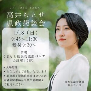 令和7年12月5日の一般質問では、多くの皆さまに傍聴いただき、誠にありがとうございました。このたび、録画中継が配信されましたので、ご案内申し上げます。 🔍熊本県議会 インターネット中継 本編はこちらから観 […]