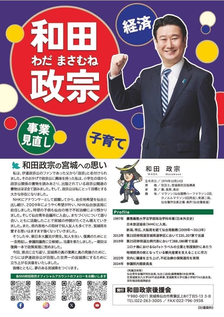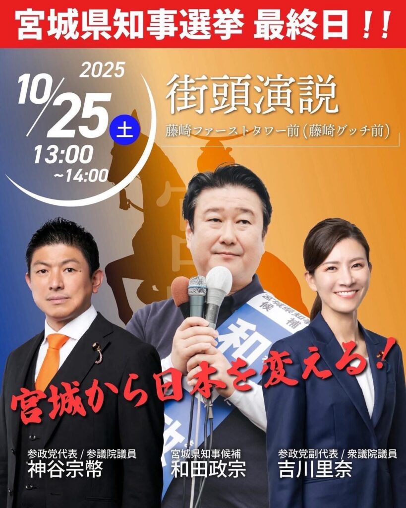 【山口誠太郎 国政改革委員と街頭活動 と 宮城県知事選挙 和田政宗候補 応援!】